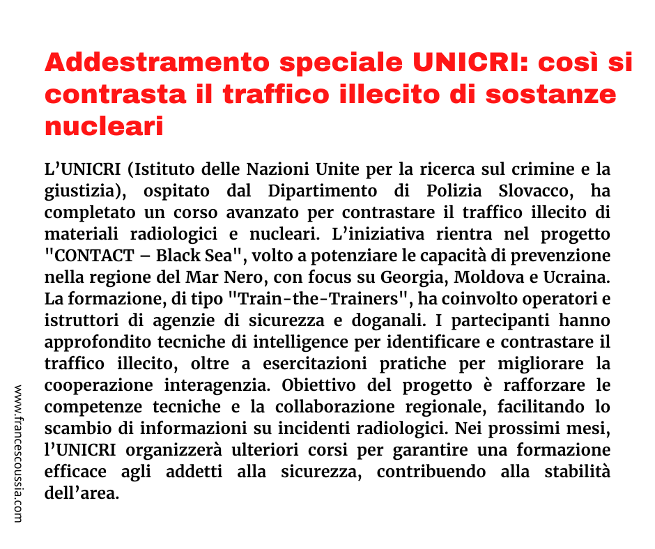 Addestramento speciale UNICRI: così si contrasta il traffico illecito di sostanze nucleari