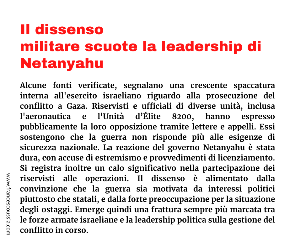 Il dissenso militare scuote la leadership di Netanyahu