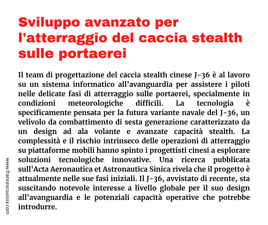 Sviluppo avanzato per l’atterraggio del caccia stealth sulle portaerei cinesi