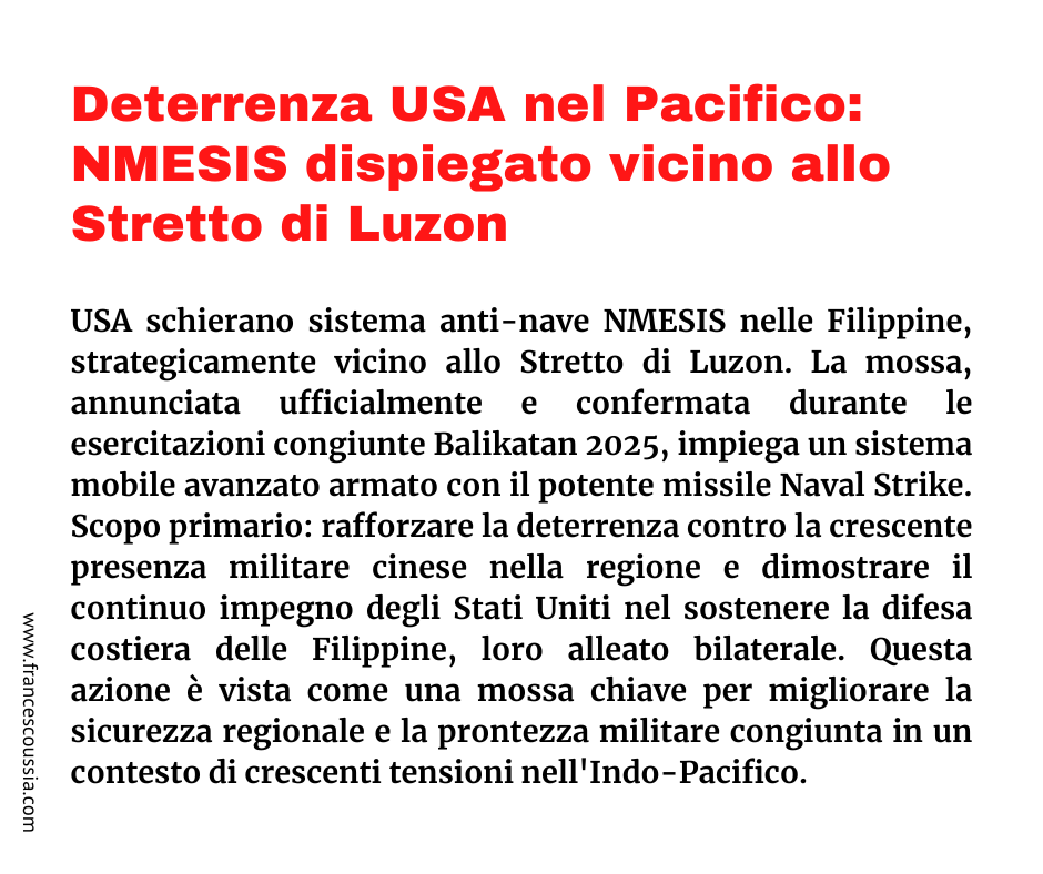Deterrenza USA nel Pacifico: NMESIS dispiegato vicino allo Stretto di Luzon