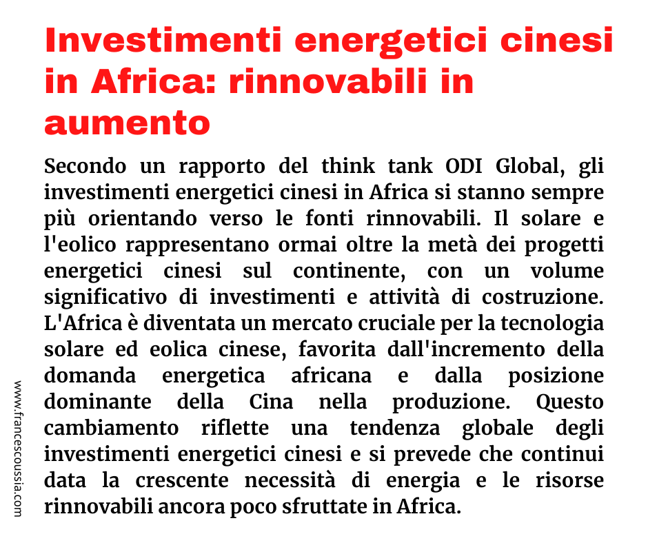 Investimenti energetici cinesi in Africa: rinnovabili in aumento