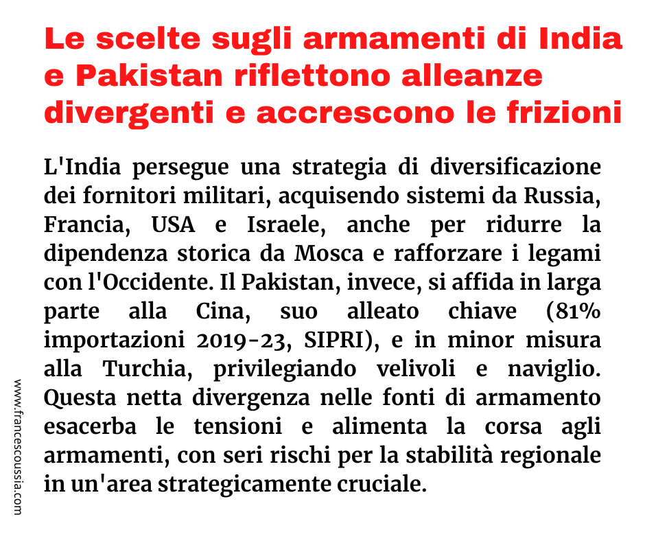 Le scelte sugli armamenti di India e Pakistan riflettono alleanze divergenti e accrescono le frizioni