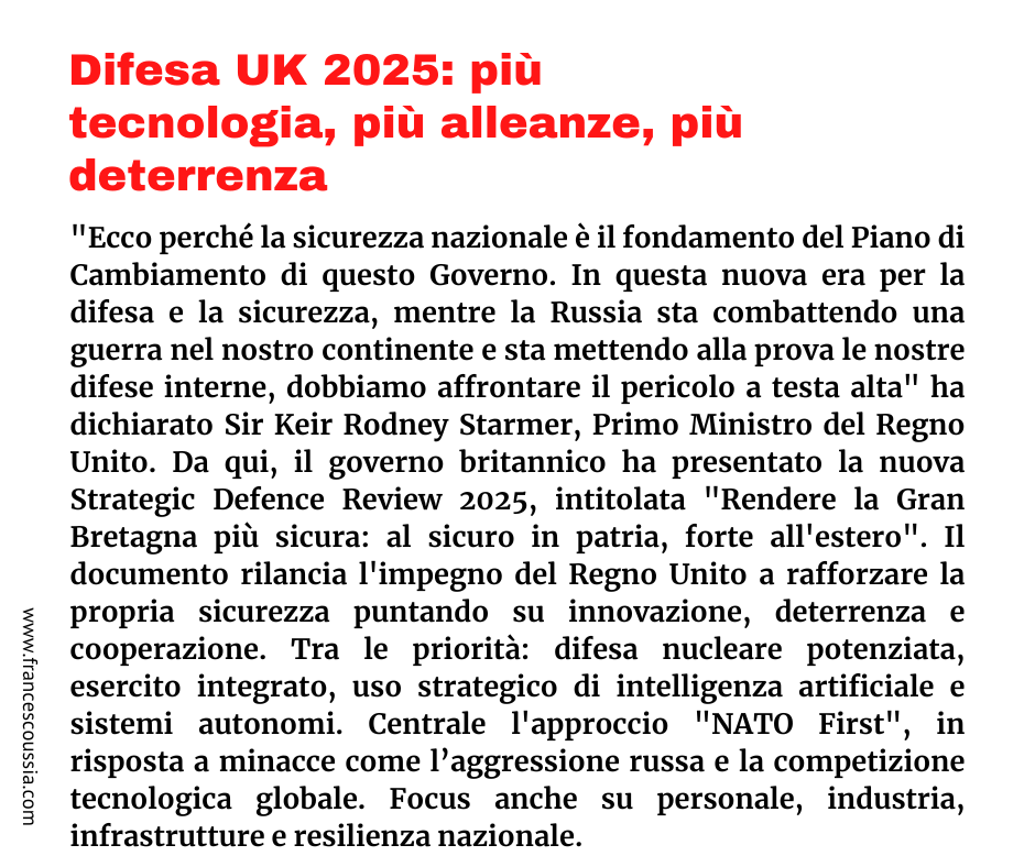 Difesa UK 2025: più tecnologia, più alleanze, più deterrenza