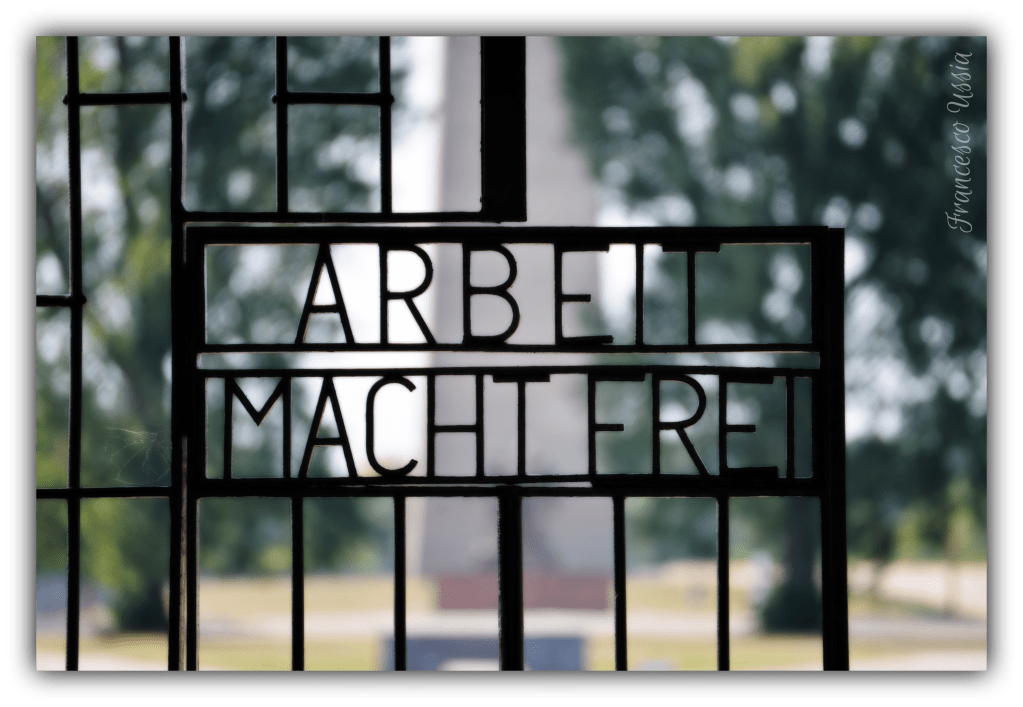 L’ingresso del campo di concentramento di Sachsenhausen, con la cinica ed ingannevole scritta “Arbeit Macht Frei” (Il lavoro rende liberi).