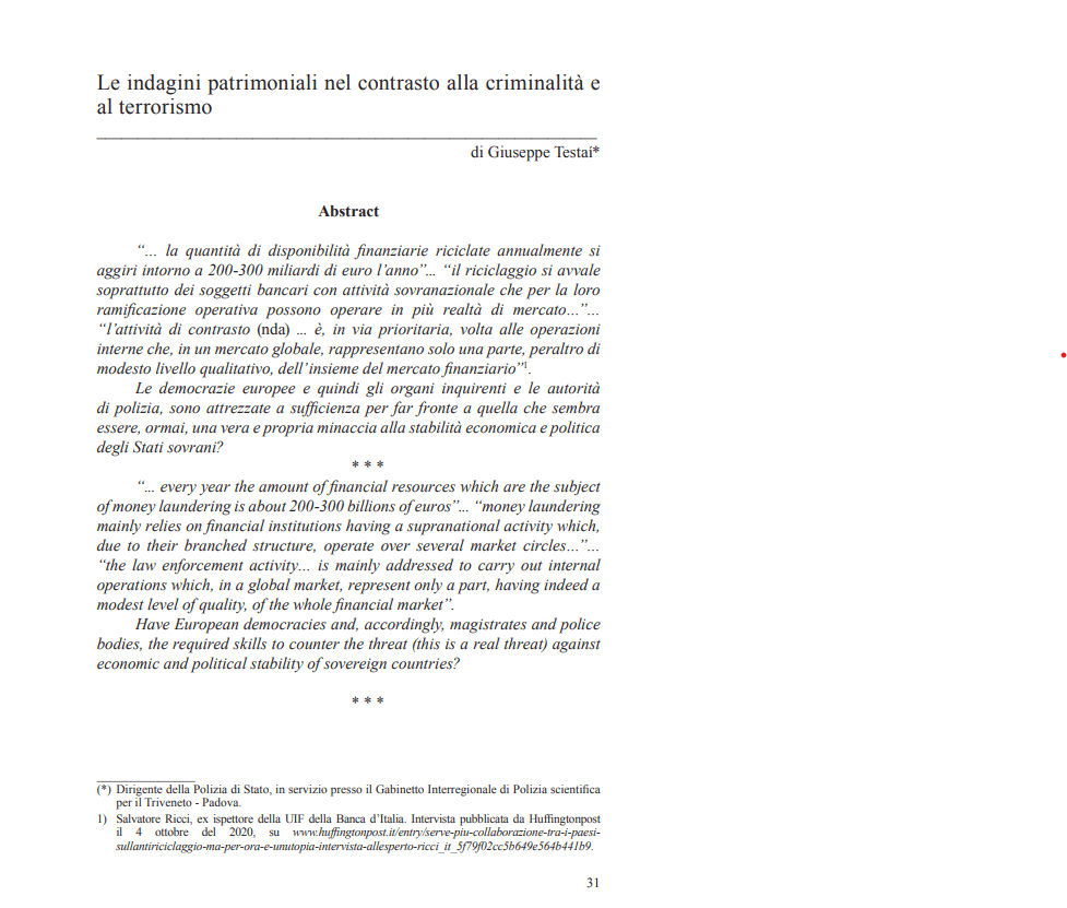 Le indagini patrimoniali nel contrasto alla criminalità e al terrorismo